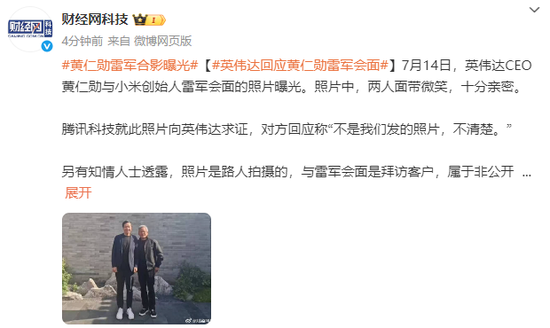 7月14日,英伟达CEO黄仁勋与小米创始人雷军会面的照片曝光。照片中,两人面带微笑,十分亲密。
